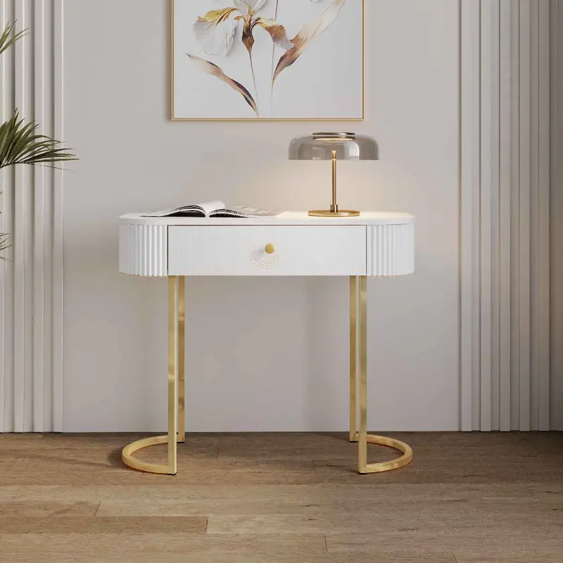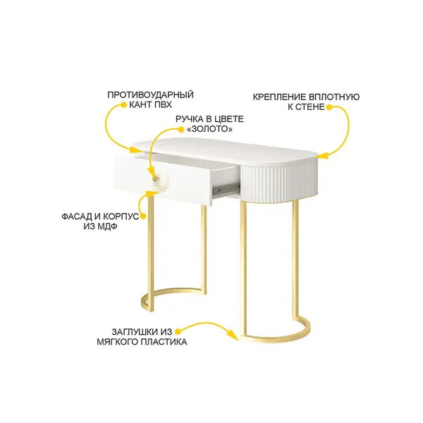 Консоль интерьерная Белла 2.1 (01) Белый шпон/Крем-брюле/Золото