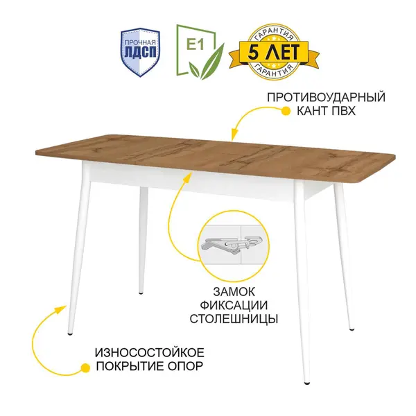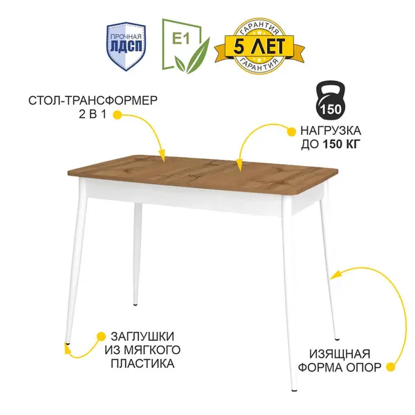 • Стол кухонный раздвижной выдерживает максимальную распределенную нагрузку до 150 кг как в сложенном, так и в полностью разложенном виде.