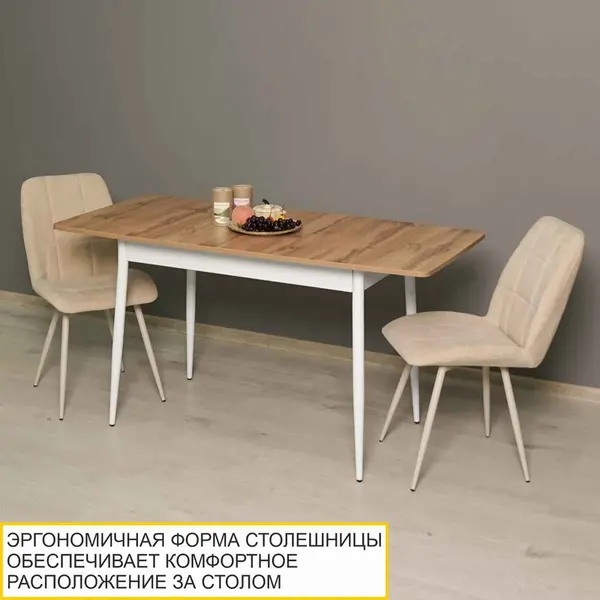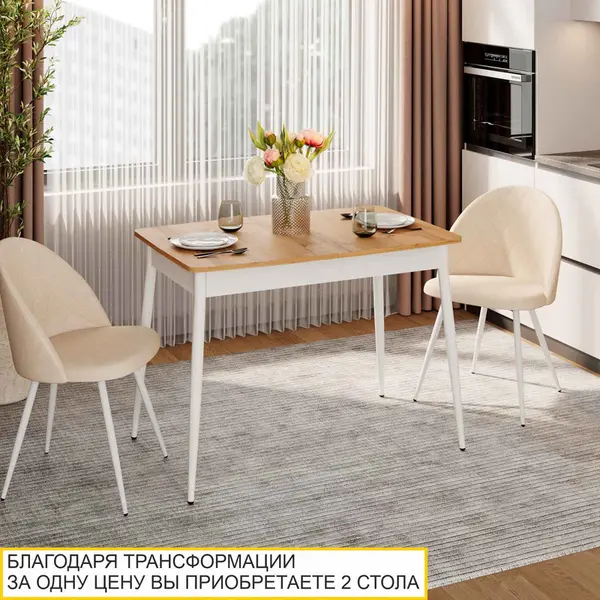 • За одну цену Вы приобретаете 2 стола! В сложенном виде – это компактный стол на 110 см. Надежный механизм синхронного раздвижения и "вставка-бабочка" позволяют трансформировать столик во вместительный стол с размером столешницы 145 см.
