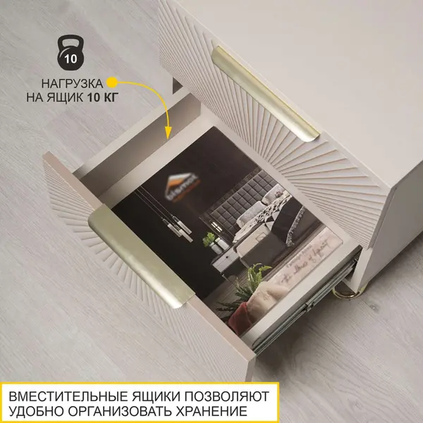 • Тумба оснащена вместительными ящиками, что позволяет удобно организовать хранение важных предметов.
