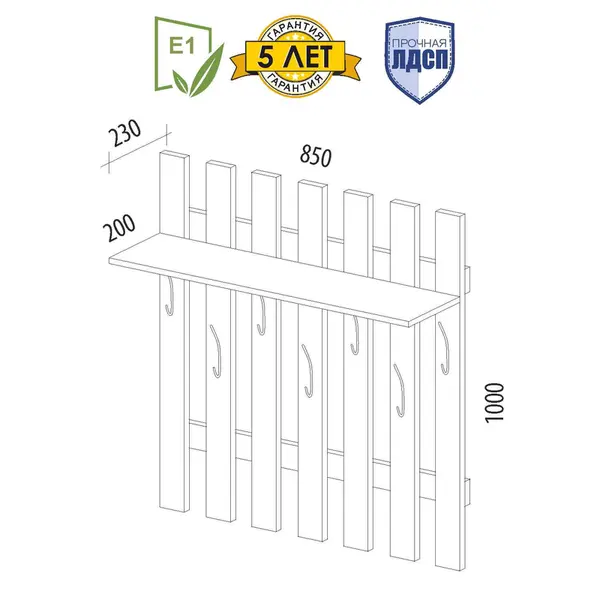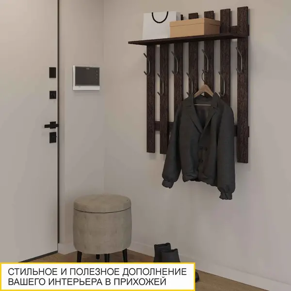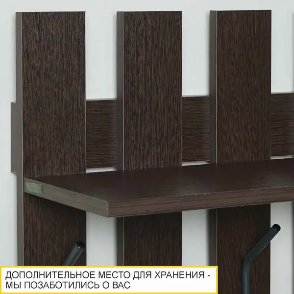 • Вешалка настенная для прихожей оснащена полкой, что обеспечивает дополнительное место для хранения головных уборов и аксессуаров.