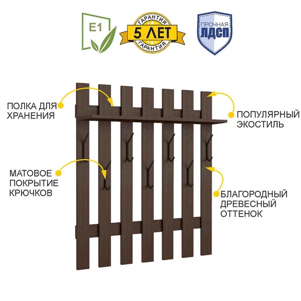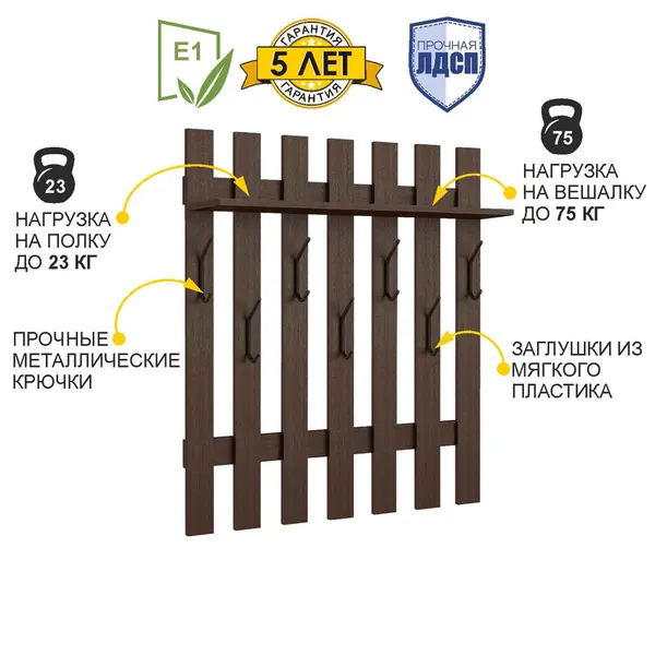 • Прочные металлические крючки стильной формы придают вешалке настенной в прихожую эффектный внешний вид.