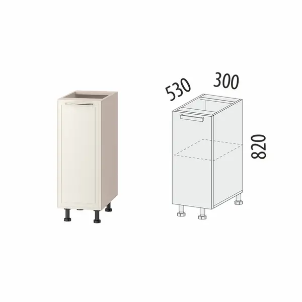 • Высота напольных шкафов составляет 820 мм (без столешницы), что обеспечивает комфортный процесс приготовления пищи.