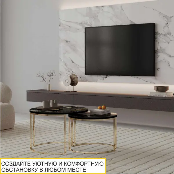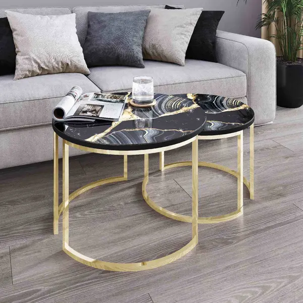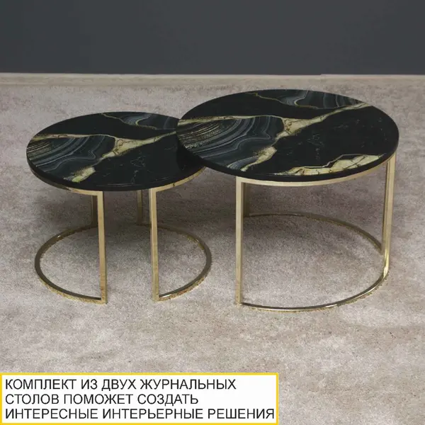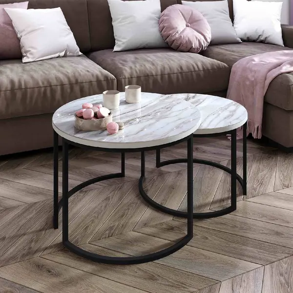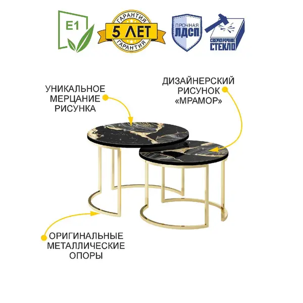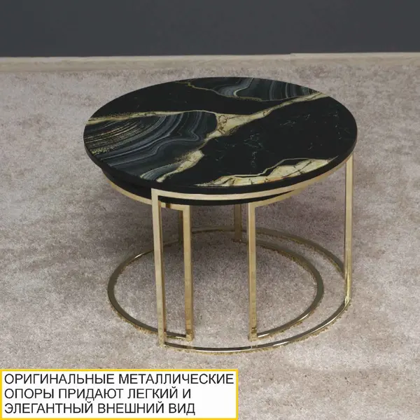Комплект журнальных столиков с декором "мрамор" будет актуален для интерьера в любом стиле. Глубокий рисунок темного мрамора с россыпью мерцающих прожилок придает столикам благородный и стильный внешний вид.