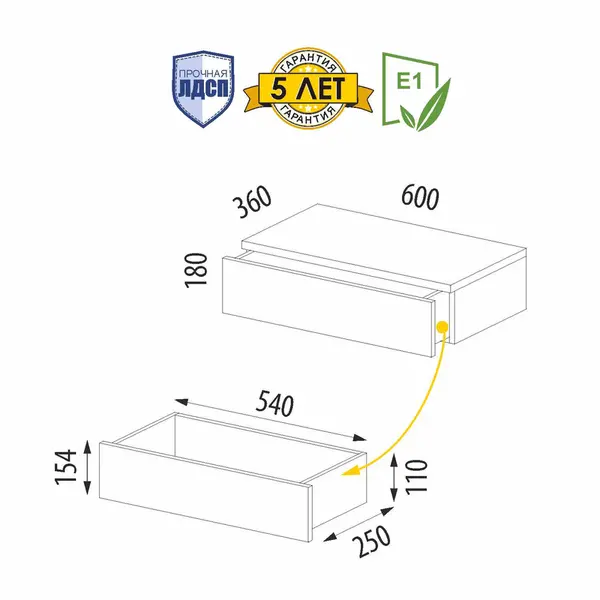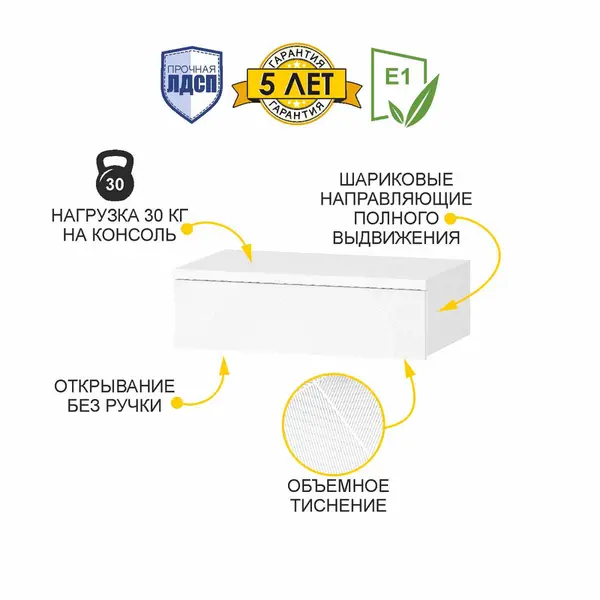 • Прочная конструкция ящика и надежные направляющие выдерживают нагрузку до 10 кг.