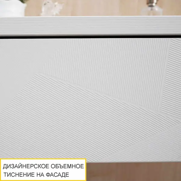 • Объемное тиснение на фасаде ящика подчеркивает современный стиль изделия и добавляет ему оригинальности. Рельефный рисунок придает уникальный внешний вид Вашему изделию, а также обладает приятной на ощупь текстурой.