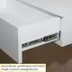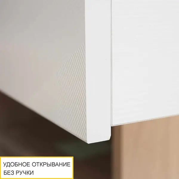 • Отсутствие лицевой фурнитуры подчеркивает современный дизайн мебели. Ящик легко и удобно открывается за счет свеса фасада.