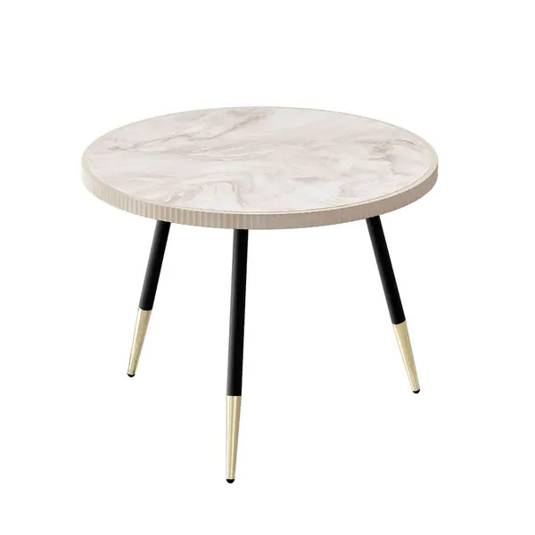 Стол журнальный круглый Рим 48 (02) Мрамор латте/Кашемир лен/Черный