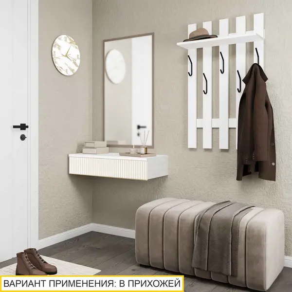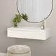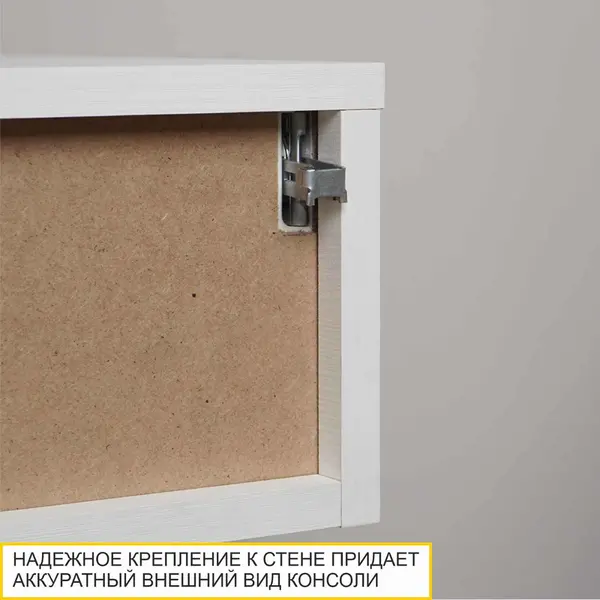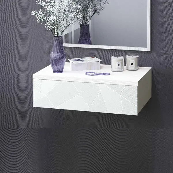 Подвесная консоль выполнена в актуальном и универсальном белом цвете, его можно сочетать с любыми другими цветами и фактурами. В то же время белый цвет добавляет интерьеру свежести и визуально расширяет пространство.