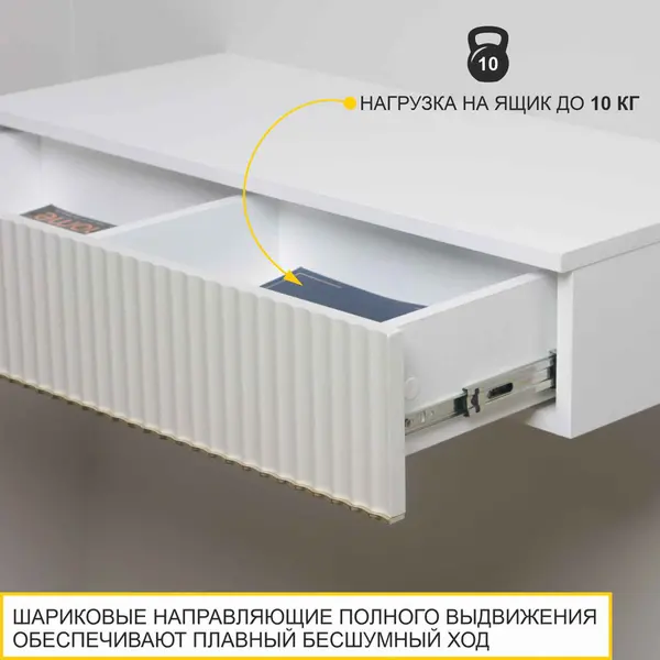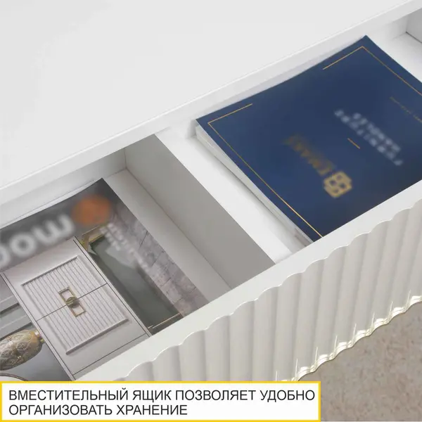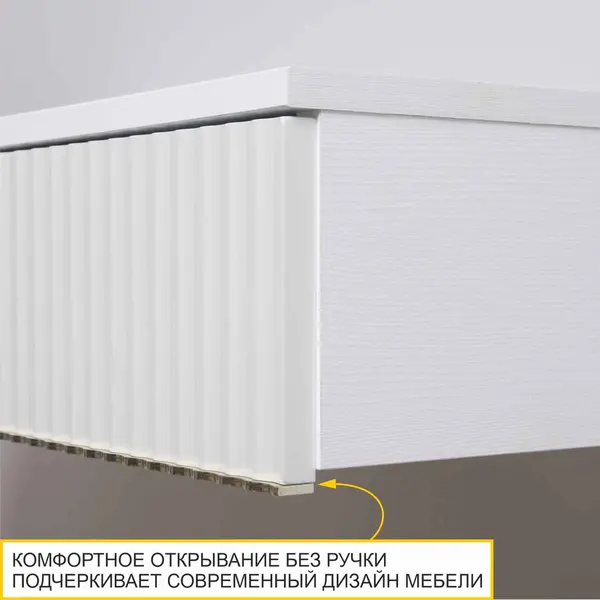 • Ящик консоли легко и удобно открывается за счет свеса фасада. Отсутствие ручки подчеркивает современный дизайн мебели.