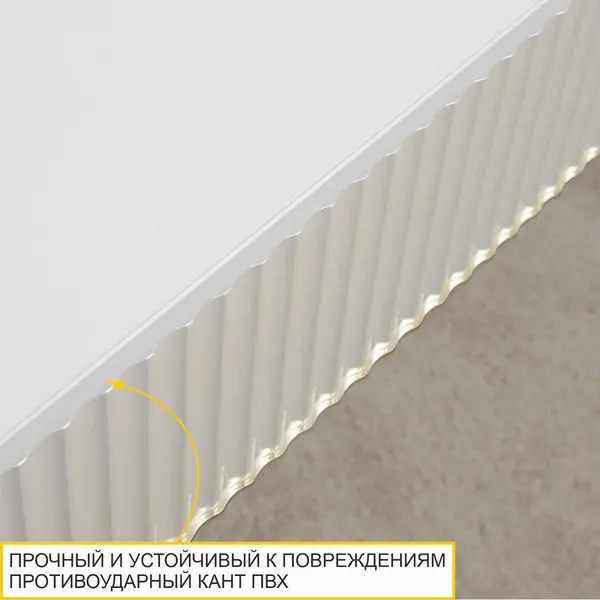 • Противоударный кант ПВХ толщиной 0,4 и 2 мм защищает края изделия от сколов и влаги, увеличивает срок эксплуатации изделия и сохраняет его внешний вид на долгие годы.