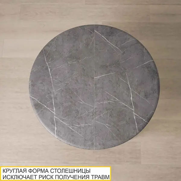 • Круглая форма столешницы исключает риск получения травм, безопасна для маленьких членов семьи. Вам не придется защищать углы специальными накладками для острых углов.