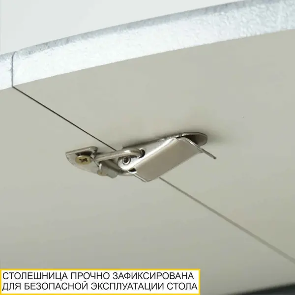 • Замок для фиксации столешницы придает жесткость конструкции как в собранном, так и в разложенном виде. Позволяет надежно зафиксировать столешницу во время эксплуатации стола.