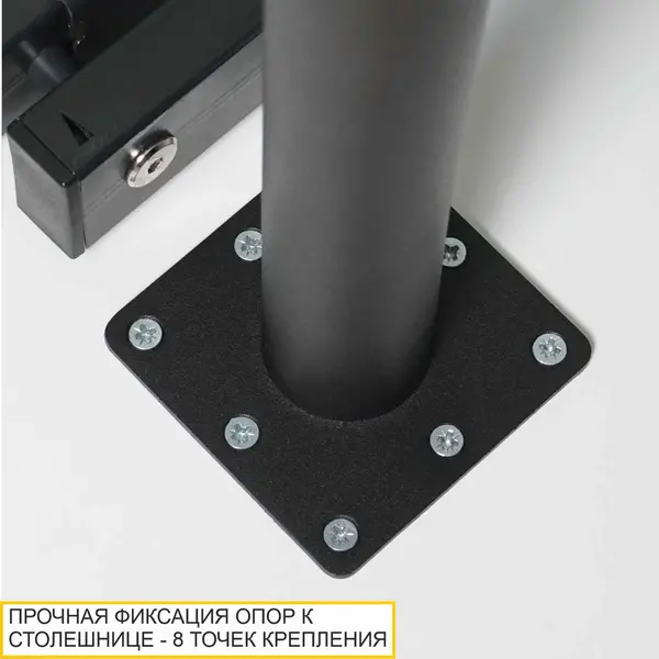 • Опоры выполнены из прочной стали толщиной 1,5 мм – благодаря такому качеству материала опора выдерживает повышенную нагрузку на изгиб. Многие производители экономят и используют более тонкую сталь от 1 до 1,2 мм. Прочная фиксация опор к столешнице – 8 точек крепления.