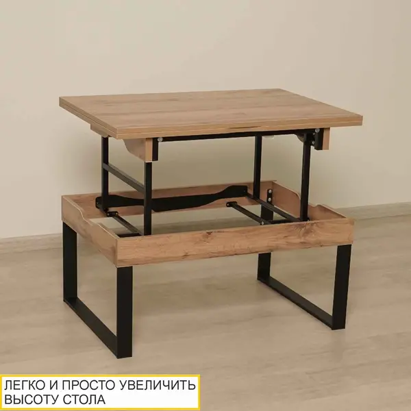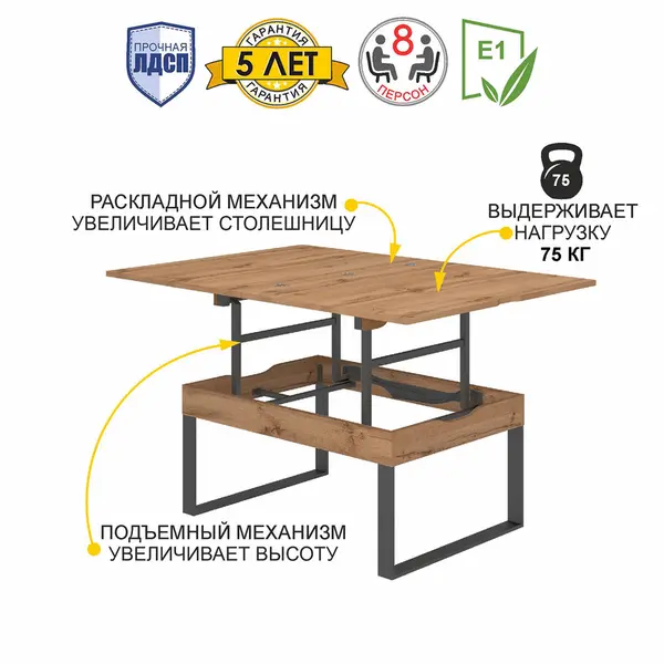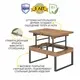 • Благодаря подъемному механизму стол может использоваться как кофейный столик, а также как полноценный стол для кухни, для гостиной или как компьютерный стол.