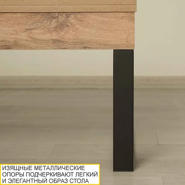 • Современный внешний вид столу придает узкая царга, в которой скрыт подъемный механизм трансформации стола.