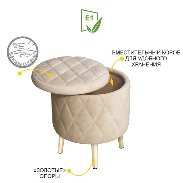 • Основа крышки пуфа изготовлена из МДФ. Материал обладает высокой плотностью и экологичностью.