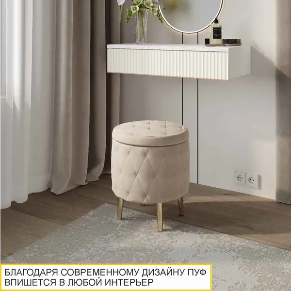 • Скругленная форма опор придаёт пуфу современный внешний вид.