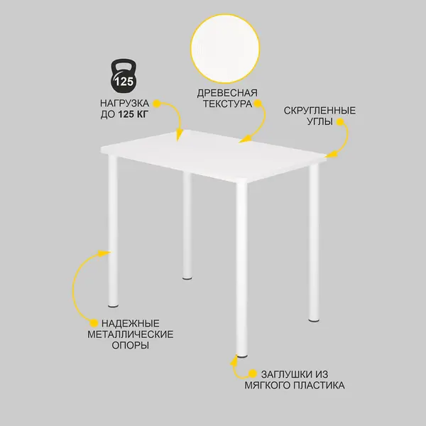 • Равномерно распределенная нагрузка на стол обеденный кухонный - до 125 кг.