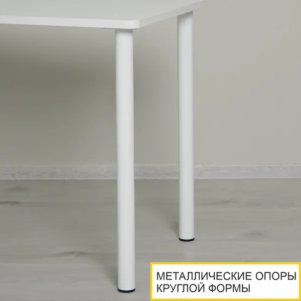 Белый цвет кухонного стола в сочетании с белыми металлическими опорами легко комбинируется с любыми другими цветами и фактурами. В то же время такой стол добавляет интерьеру свежести и визуально расширяет пространство. А имитация натуральной древесной текстуры создает ощущение уюта. Природная красота экостиля добавляет модную нотку Вашему интерьеру.