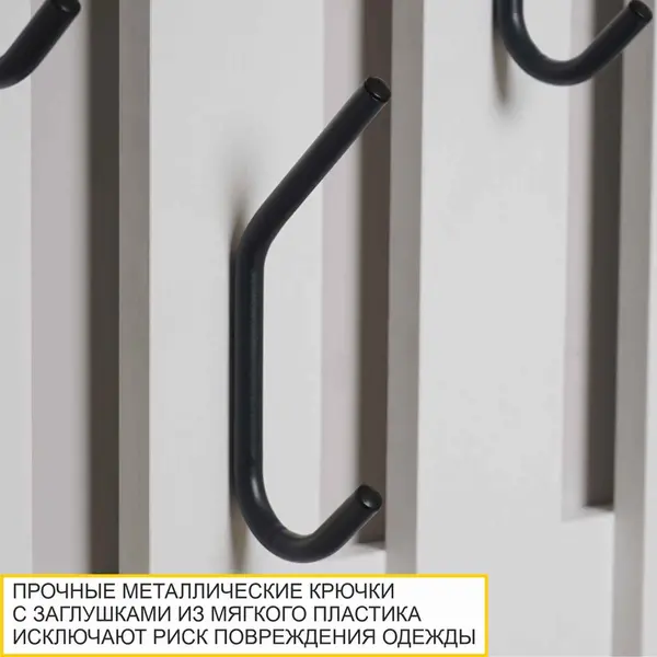 • Надежные крепления к стене обеспечивают безопасную эксплуатацию изделия и надежно фиксируют вешалку при снятии одежды с крючка.
