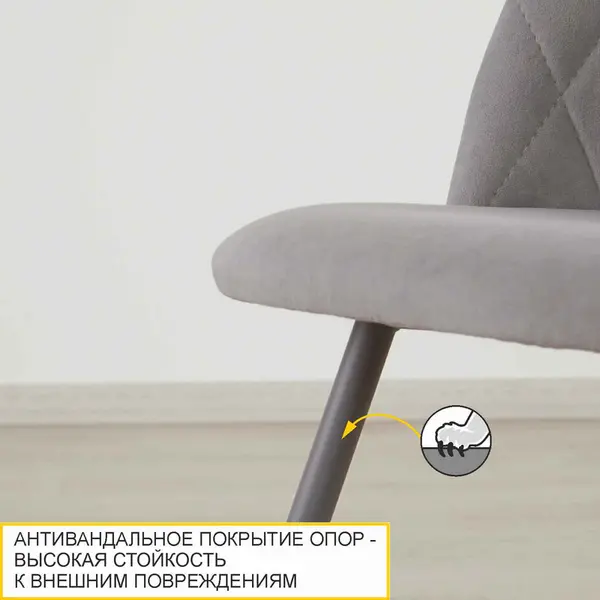 Базовый светло-серый цвет, в котором выполнен стул, прекрасно сочетается с различными оттенками и успешно применяется в разнообразных решениях в интерьере.