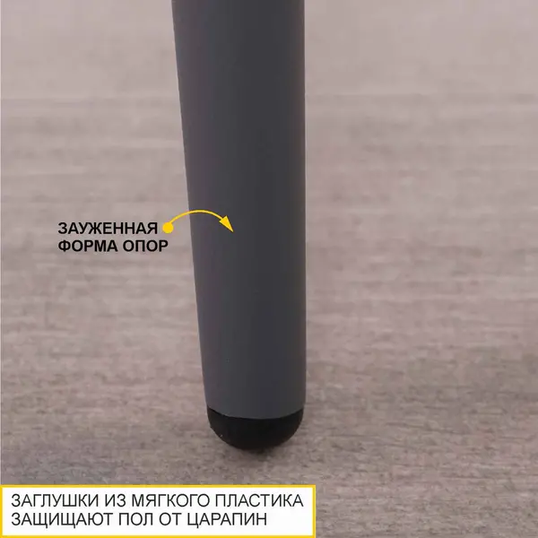 • Заглушки из мягкого пластика исключают риск повреждения напольного покрытия и защищают пол от царапин. Качественный пластик обеспечивает плотную посадку заглушек в опору и исключает их поломку.