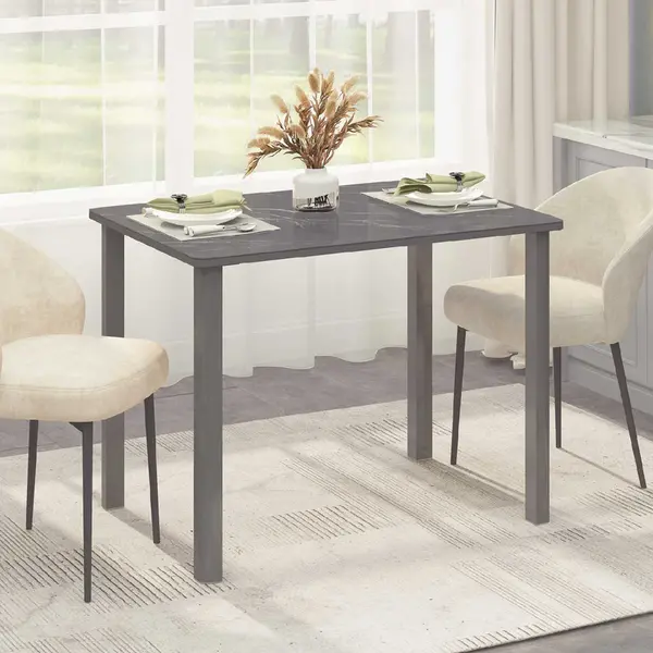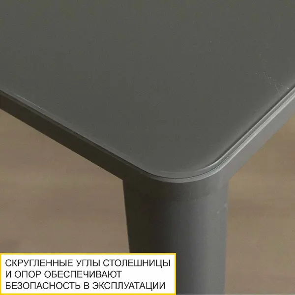 Обеденный стол выполнен в базовом сером цвете, он прекрасно сочетается с различными оттенками и может быть с успехом применен в разнообразных стилевых решениях.