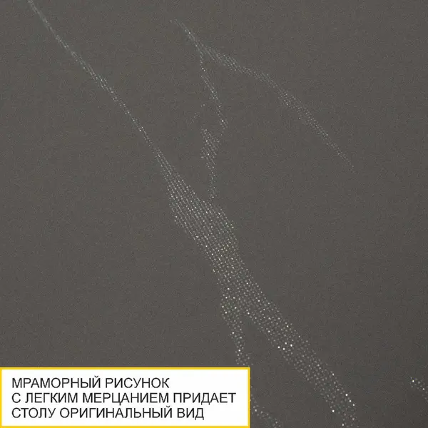 • Мраморный рисунок с легким мерцанием подчеркивает уникальный стиль стола. Рисунок нанесен с помощью специальной технологии, благодаря которой он не стирается и не выцветает со временем.