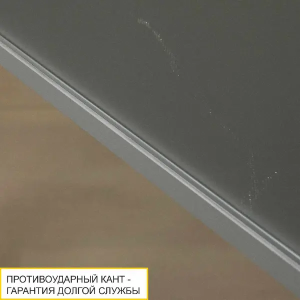 • Противоударный кант ПВХ 2 мм защищает края изделия от сколов и влаги, увеличивает срок эксплуатации изделия и сохраняет его внешний вид на долгие годы.