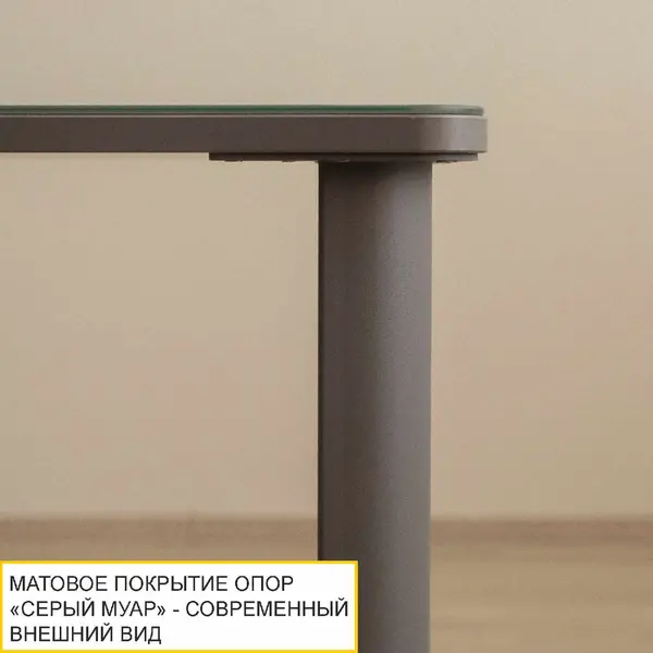 • Скругленная форма опор придает столу оригинальный внешний вид и уберегает от травм. Порошковое окрашивание опор обеспечивает отсутствие дефектов покрытия.