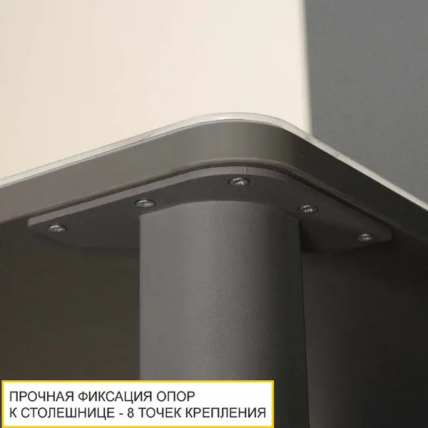 • Привычный и интуитивно-понятный принцип крепления опор к столешнице не требует особых знаний и навыков.