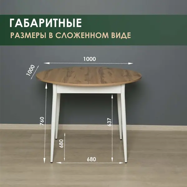 • Максимальная эксплуатационная нагрузка на стол кухонный круглый раздвижной в сложенном и разложенном виде составляет до 150 кг.