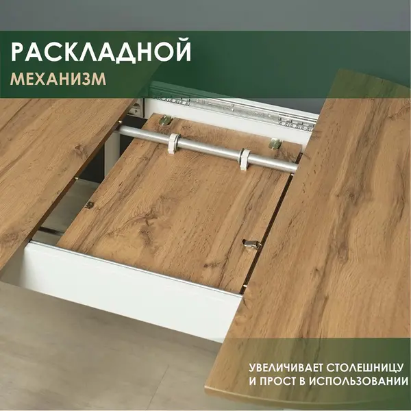 • Раскладной механизм позволяет из маленького обеденного стола кухонного сделать большой для приема гостей.