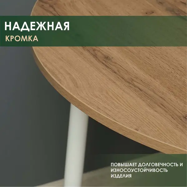 • Стильный и современный стол кухонный круглый 100 см безопасен для детей и взрослых за счет отсутствия острых углов.