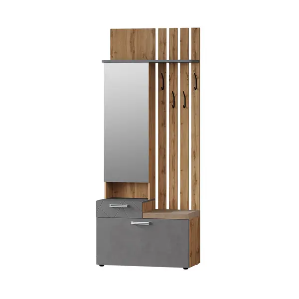 • Секция с крючками декорирована дизайнерскими панелями с фрезеровкой. Они придают коллекции современный и стильный вид.