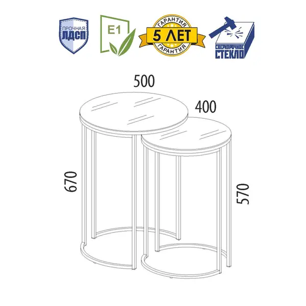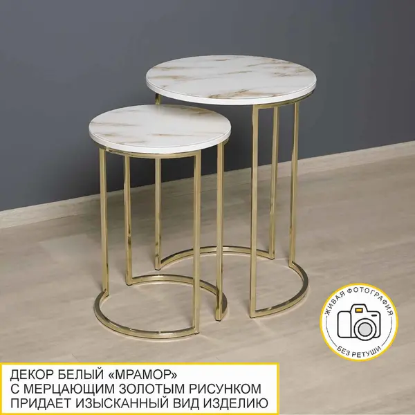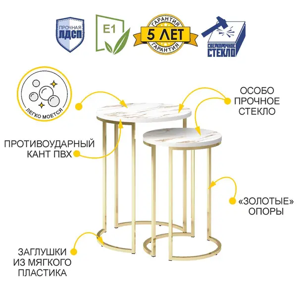 • Стеклянная столешница с дизайнерским мраморным рисунком добавляет столикам оригинальности и придает изделию эксклюзивный внешний вид. Благодаря стеклу рисунок не стирается и не выцветает со временем.