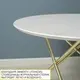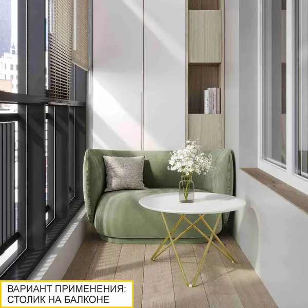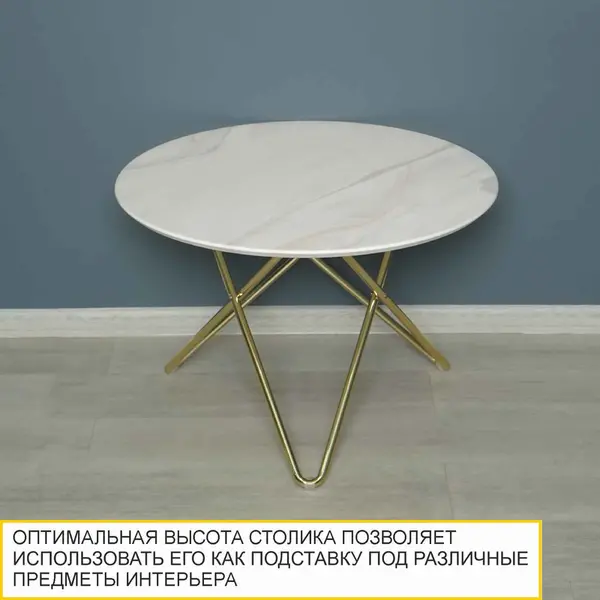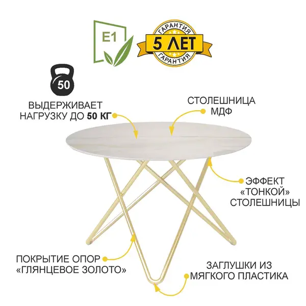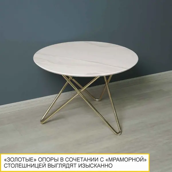 • "Золотые" опоры в сочетании с "мраморной" столешницей выглядят изысканно и ассоциируются с роскошью.