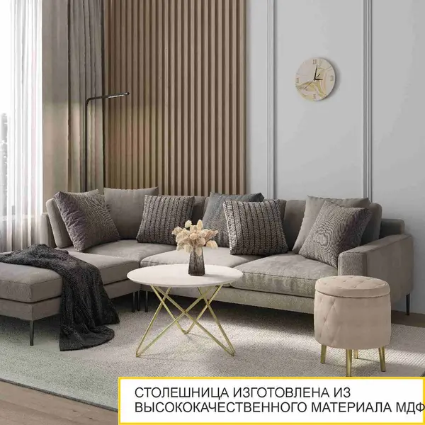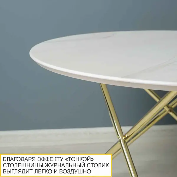 Журнальный столик выполнен в эффектном сочетании природного белого "мрамора" и "золотых" опор. Они придают столу неповторимый образ, который будет ярким акцентом в интерьере.