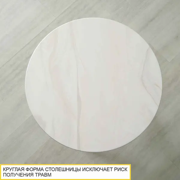 • Круглая форма столешницы исключает риск получения травм, безопасна для маленьких членов семьи. Вам не придется защищать углы специальными накладками для острых углов.
