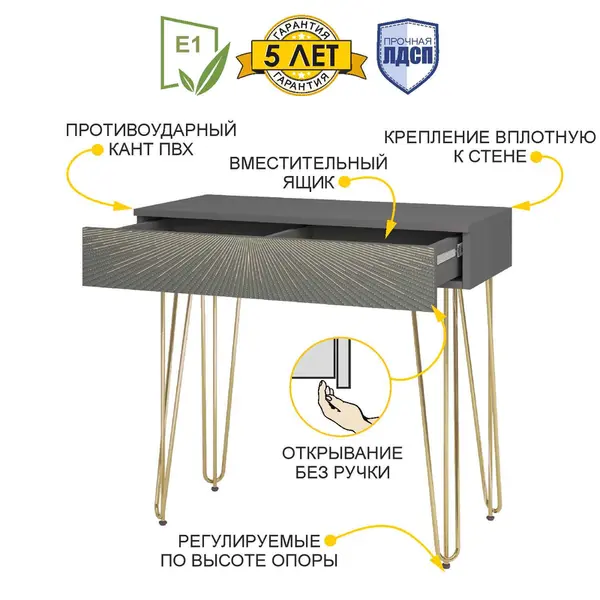 Благодаря современному дизайну косметический столик впишется в любой интерьер. Отличительная черта данной модели – это удобство и функциональность. Отличное решение для тех, кто хочет идти в ногу со временем.