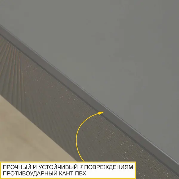 • Противоударный кант ПВХ толщиной 2 мм защищает края изделия от сколов и влаги, увеличивает срок эксплуатации изделия и сохраняет его внешний вид на долгие годы.