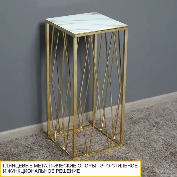 • Глянцевая металлическая опора оригинальной формы – это стильное и функциональное решение, которое станет изюминкой вашего интерьера. Она выполнена из высококачественной стали с глянцевым покрытием «золотого» цвета, что придает ей роскошный вид.